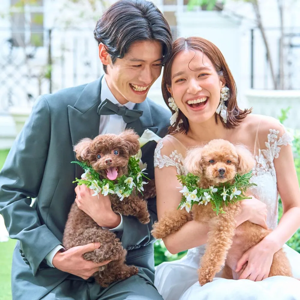 結婚式の大切な一日だからこそ大好きなペットも一緒に♪ワンちゃんはもちろん、ネコちゃん、ハリネズミまでOK!ペット専用の待合スペースも用意があり安心★ペット専用ドレスでコーディネートも楽しんで♪